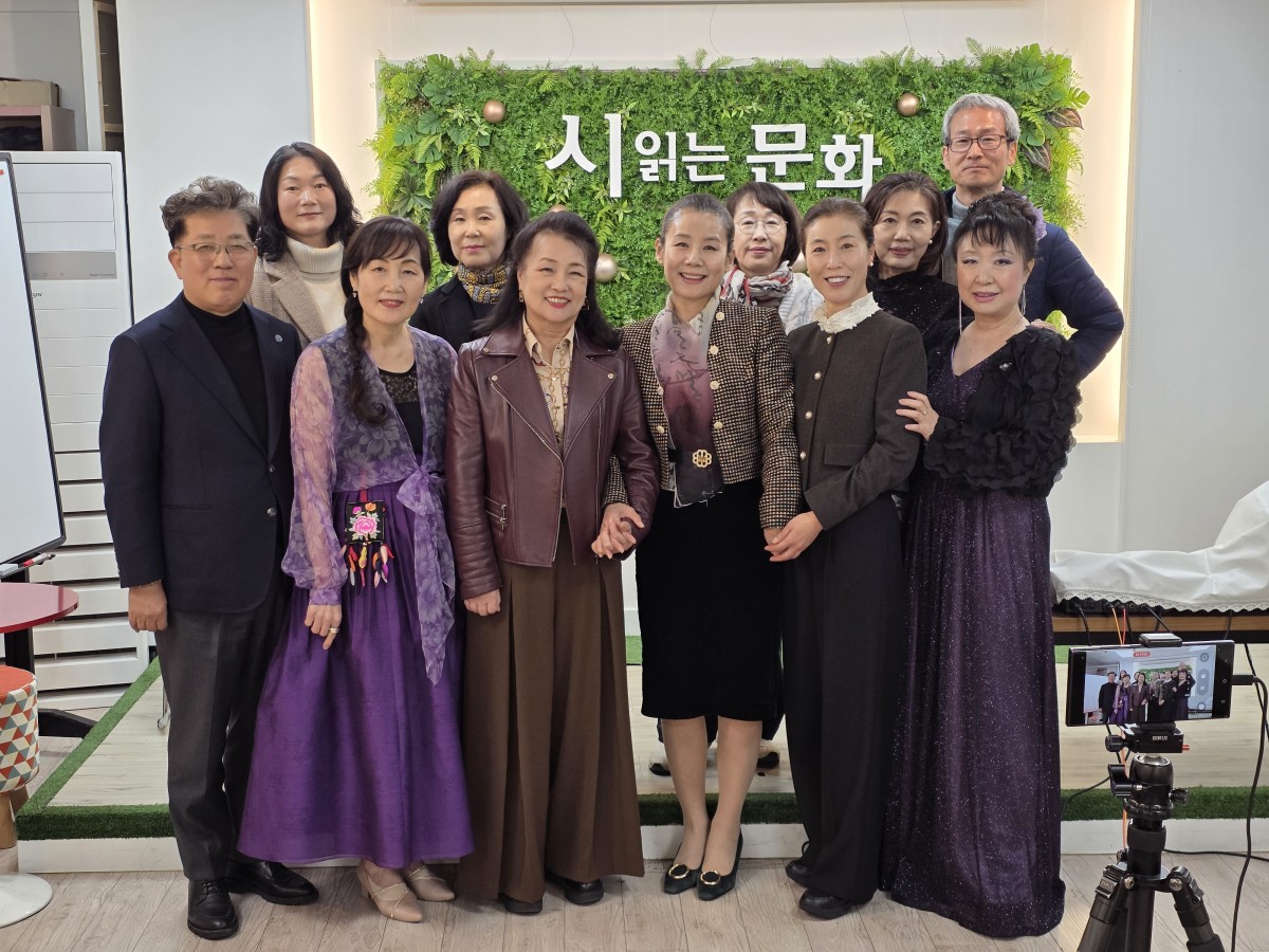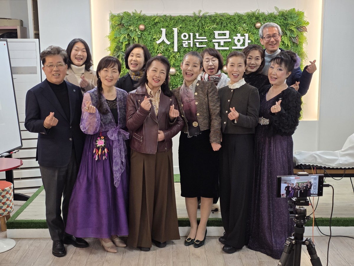 최근 시극에서의 열연에 이어 ‘눈풀꽃’을 힘 있게 담아낸 이숙희 선생님의 열정, 낭송 후 소감을 탁월하게 전한 탁정화 선생님의 진심 어린 말도 큰 공감을 불러일으켰다. 보라빛 의상으로 ‘금정산의 봄’을 아름답게 펼쳐낸 강영화 선생님은 이날의 베스트 드레서로 눈길을 모았다. 신입 회원 두 분의 경청과 자작시 낭송 또한 송년의 무대를 더욱 빛냈다.